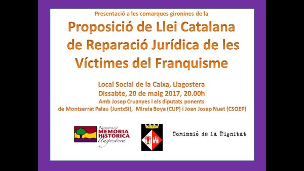 Acte de Presentació de la proposició de la Llei de Reparació Jurídica de les Vítimes del Franquisme a Llagostera el dia 20 de maig16 de maig de 2017