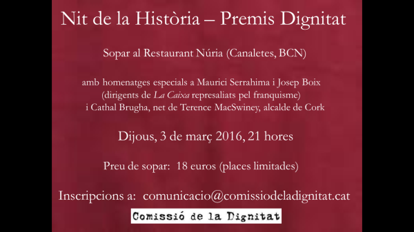 La Comissió de la Dignitat convoca la Nit de la Memòria (3 març) i exigeix que la Caixa restitueixi simbologia catalana suprimida21 de febrer de 2016